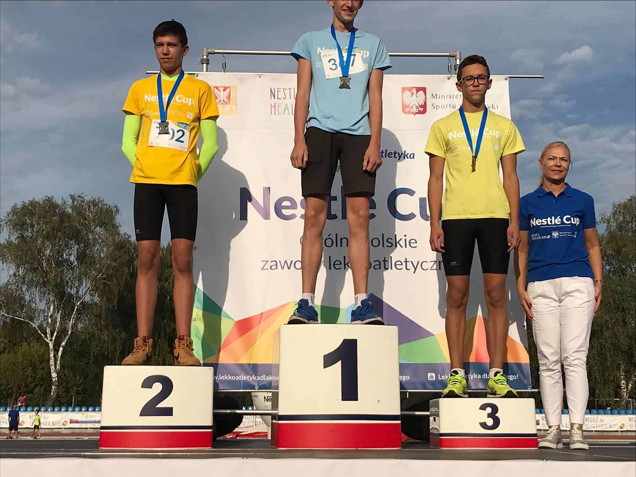 Na stadionie AWF-u w Warszawie (13.09.2018r.) odbył się Ogólnopolski Finał NESTLE CUP do którego zakwalifikowała się trójka naszych zawodników. Jakub Rozumkiewicz w kategorii U16 ustanowił nowy rekord życiowy wynikiem 185 cm !, zdobywając srebrny medal. Wśród najmłodszych uczestników – Karol Koczur zdobył srebrny medal drużynowo wchodząc w skład ekipy Śląska. W kategorii U14 w skoku w dal startowała Nikola Major. Z wynikiem 4,54 znalazła się poza strefą finałową. Dziękujemy i gratulujemy startującym.